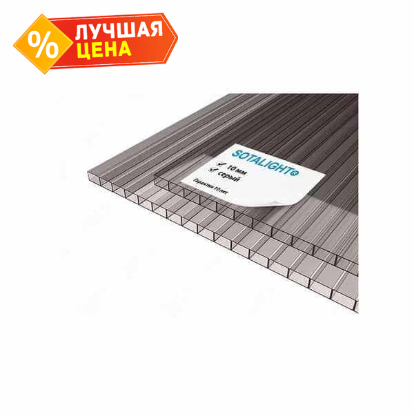 Сотовый поликарбонат 10 мм SOTALIGHT серый 2100х6000 мм