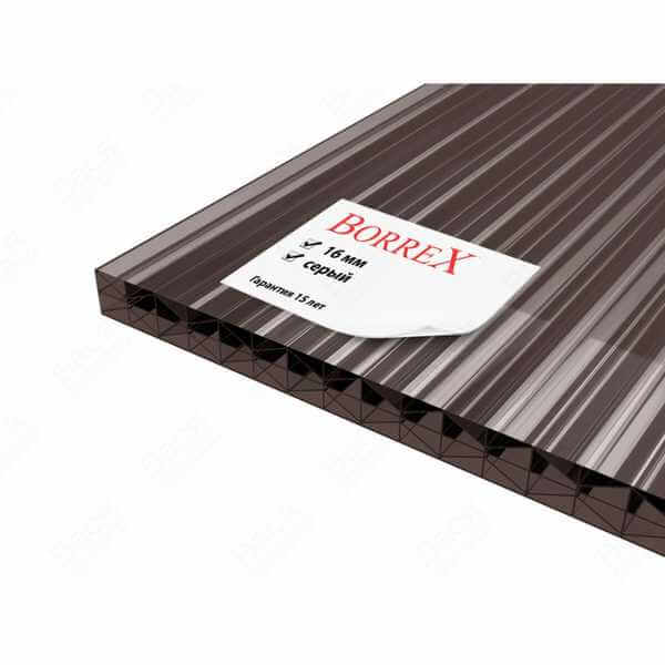 Сотовый поликарбонат 16 мм BORREX серый 2100х12000 мм