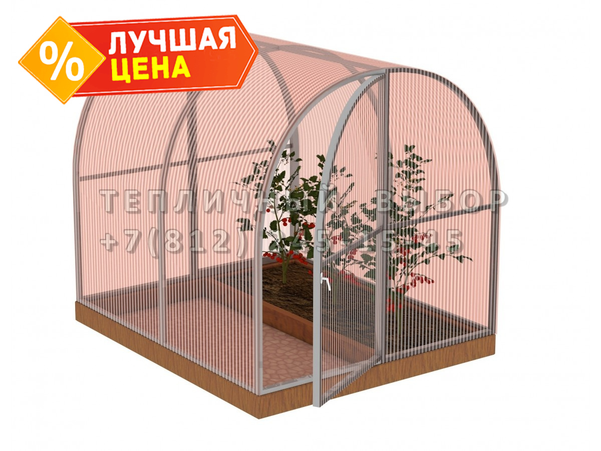 Теплица из поликарбоната-фито Арочная 1,6х2 h=1.68 м профиль 20х20 мм