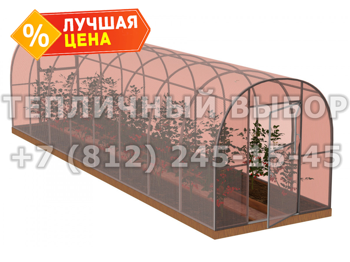 Теплица из поликарбоната-фито Арочная 2,1х12 h=2 м профиль 25х25 мм