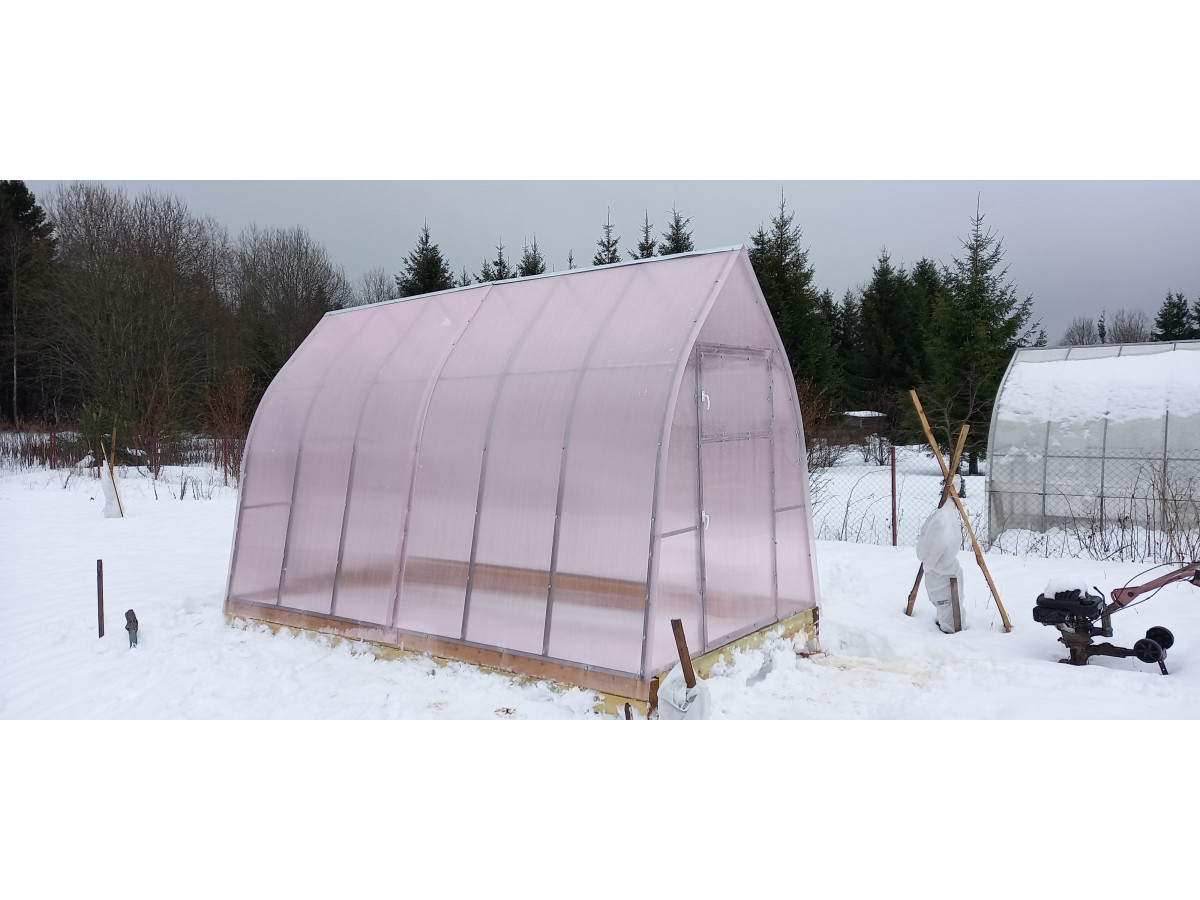 • компактность за счет небольшой ширины теплицы (2,1 метра)