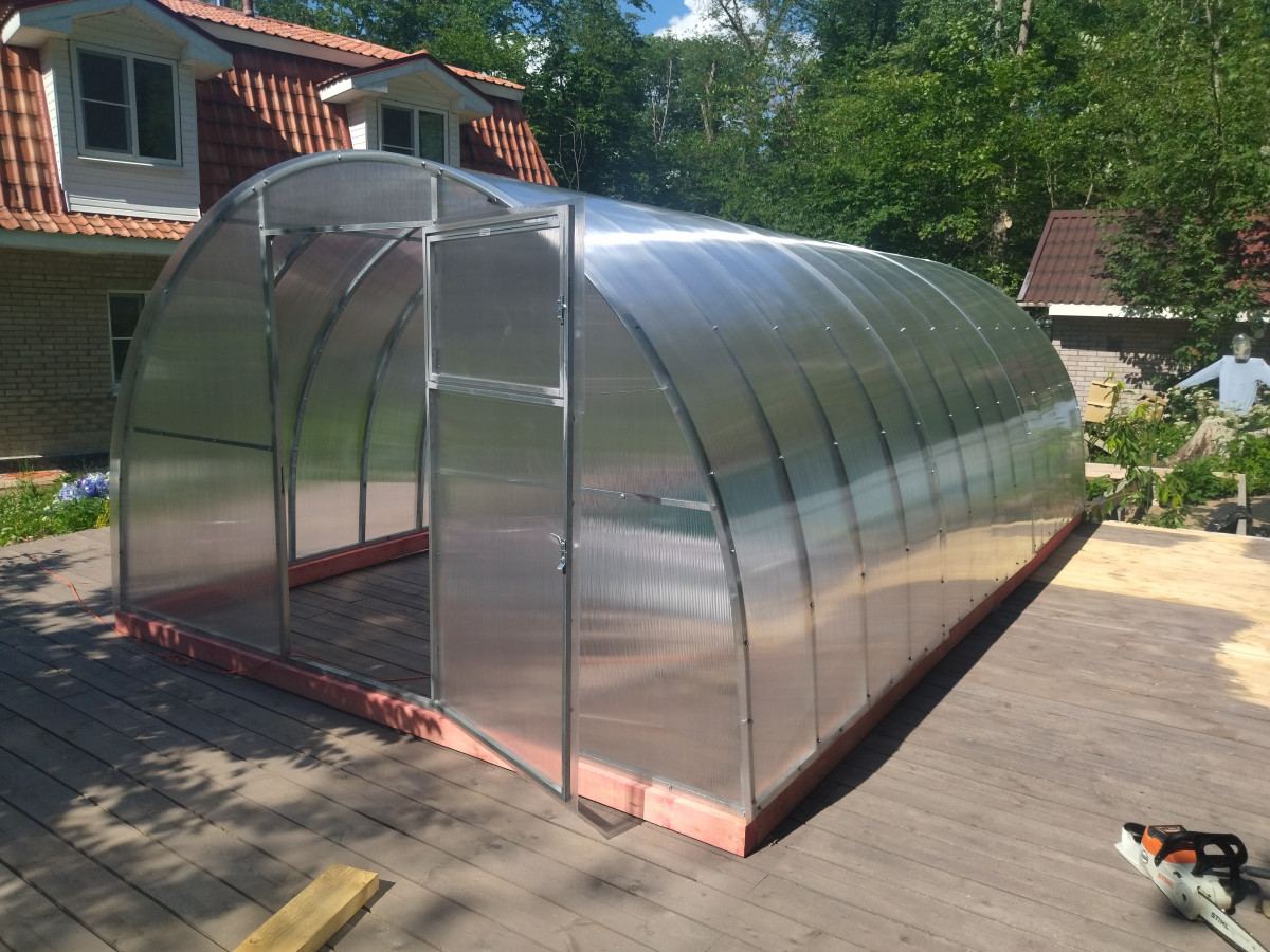В разобранном виде теплица состоит из отдельных сварных рам в виде дуги.