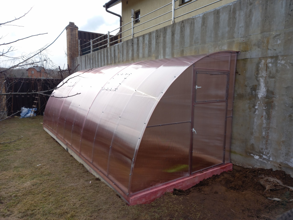 Теплица из поликарбоната Усиленная Пристенная 2,3х8 h=2.1 м профиль 25х25 мм
